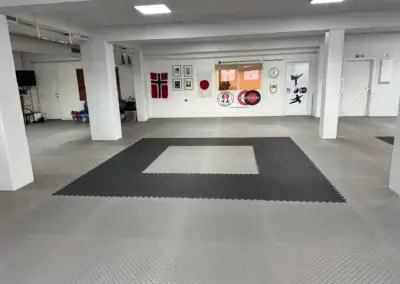 Vi kan tilby nyoppussede treningslokaler (sommer 2025) med nye treningsmatter på 200 m2. Lokalene blir rengjort hver dag av en avansert robotstøvsuger