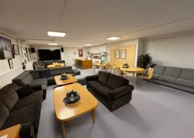 Vi har et stort sosialt rom hvor man kan få kjøpt billig kaffe og tilgang til raskt internet